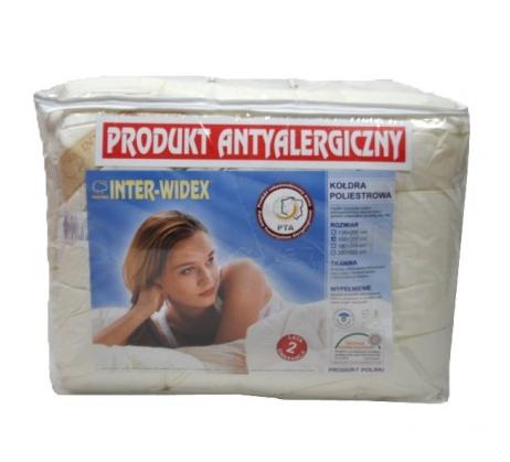 Antyalergiczna kołdra Polskiego producenta INTER-WIDEX, pokryta wysokiej jakości policottonem (tkanina bawełniano-poliestrowa), wypełniona cieniutkimi, rurkowymi, spiralnie skręconymi włókienkami poliestrowymi z systemem 3D, pokrytymi silikonizowaną powłoką - co nadaje jej miękkość, puszystość i wysoką trwałość.