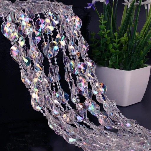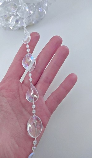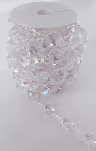 Dekoracyjny łańcuch z akrylu imitujący kryształki. Piękna, ponadczasowa ozdoba, z której można tworzyć przeróżne aranżacje dekorujące wnętrza.