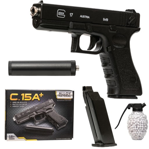 PISTOLET na KULKI TŁUMIK GLOCK ASG METAL 800 GRATIS pistolety na kulki