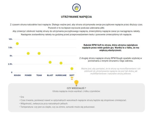 BABOLAT RPM ROUGH łączy w sobie niską utratę naprężenia, wysoką wytrzymałość oraz niespotykaną rotację.