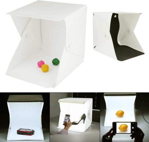 - łatwy montaż (na zatrzaski), można rozłożyć studio i umieścić je na dowolnej powierzchni, aby uzyskać bardzo dobre tło dla małych artykułów fotograficznych, robiąc zdjęcia produktów