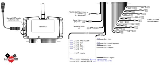Jest to kompletny zestaw, który przy montażu wymaga jedynie podłączenia zasilania do wiązki elektrycznej (+, - 12VDC) oraz przykręcenia przewodów hydraulicznych.