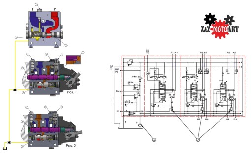Zestaw proporcjonalny do wózka zrywkowego/przyczepy leśnej składa się z rozdzielacza proporcjonalnego ośmiosekcyjnego, dwóch joysticków elektrycznych trzyosiowych oraz wiązki elektrycznej montażowej. Rozdzielacz może być zasilany zarówno z pompy o stałym wydatku jak i pompy o zmiennej wydajności z linią wykrywania obciążenia LS.