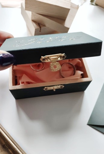 Nasza wyjątkowa szkatułka na obrączki dowolnie przez Was personalizowana będzie idealnym dopełnieniem Waszych dekoracji.