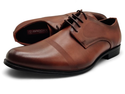 BUTY WIZYTOWE MĘSKIE BADOXX ELEGANCKIE BRĄZ WYGODNE PÓŁBUTY