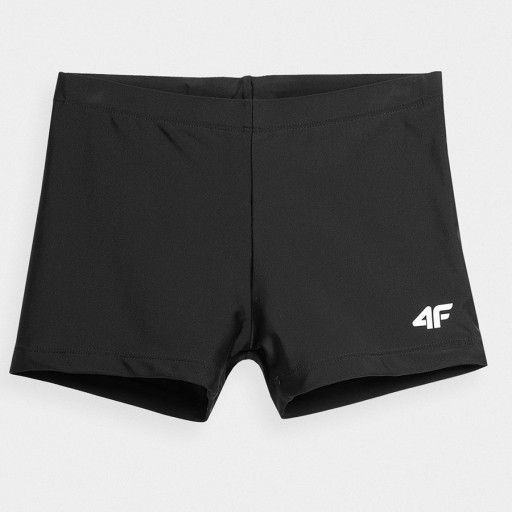 Kąpielówki chłopięce 4F z małym logiem, o kroju bokserek. W kolorze czarnym.