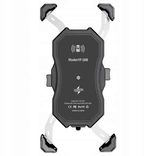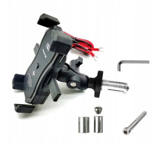 Motocyklowy uchwyt na telefon z ładowaniem indukcyjnym + USB. Funkcja szybkiego ładowania ze zmiennym napięciem qc 3.0 Stabilność i wstrząsoodporność. Montaż na główkę ramy. Uchwyt przeznaczony do telefonów (4 do 7 cali) i każdego innego urządzenia (o długości boku od 35-85mm)