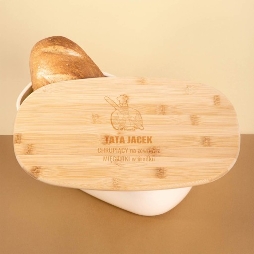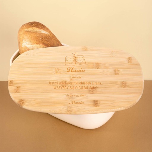 Chlebak z bambusową pokrywką BEŻOWY z GRAWEREM prezent upominek