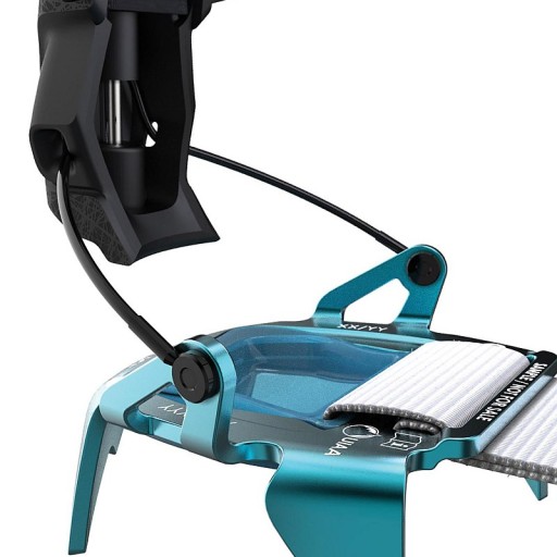 Patent marki Blue Ice opiera się na centralnej części, czyli łączniku pomiędzy przednią a tylną szyną. Został on wykonany z tekstylnej, bardzo mocnej i trwałej taśmy, która dzięki swojej elastyczności umożliwia tak minimalistyczną kompaktowość całego zestawu.