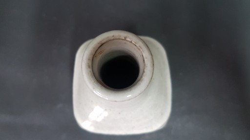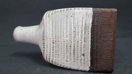 Stara, ceramiczna butelka, częściowo szkliwiona zdobiona reliefowym wzorem. Sygnowana pod spodem.