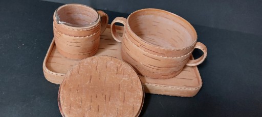 Stary zestaw z korka - taca, cukiernica mlecznik.