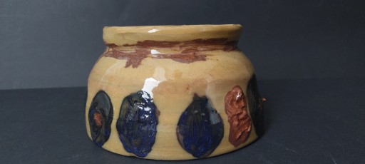 Stara ręcznie wykonana szkliwiona miseczka. Pod spodem sygnowana.