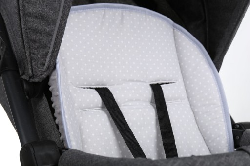 Wkładka jest wykonana z atestowanych materiałów najwyższej jakości. Po założeniu pasów, wkładka dopasuje się do wózka, nie przesuwa się.