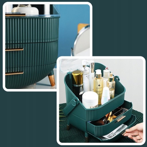Nasz praktyczny organizer kosmetyczny z dwupoziomowymi szufladami i przezroczystymi pokrywami to doskonałe rozwiązanie dla osób, które chcą zadbać o bezpieczeństwo i porządek swoich kosmetyków. Zaprojektowany w taki sposób, aby chronić Twoje kosmetyki przed kurzem i wilgocią, umożliwi Ci przechowywanie różnych akcesoriów kosmetycznych - od szminek i pędzli po biżuterię. Dzięki naszemu produktowi, możesz mieć pewność, że Twoje kosmetyki są w bezpiecznym miejscu i łatwo dostępne, kiedy ich potrzebujesz. Zamów już dziś i ciesz się porządkiem w swojej łazience!