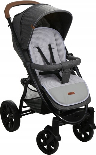 Wkładka jest wykonana z atestowanych materiałów najwyższej jakości. Po założeniu pasów, wkładka dopasuje się do wózka, nie przesuwa się.
