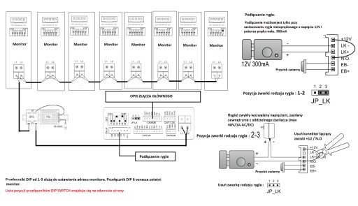 - Zasilanie wideodomofonu: Z transformatora przez 2 przewody
