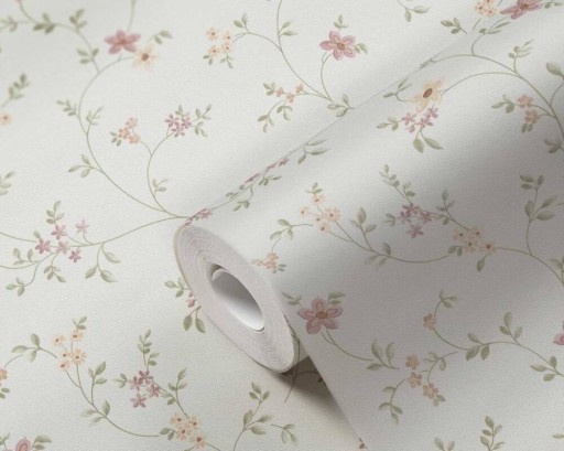 - Drobny i delikatny deseń z ukwieconych gałązek. Ta tapeta z powodzeniem sprawdzi się we wnętrzach urządzonych w stylu angielskim, prowansalskim.