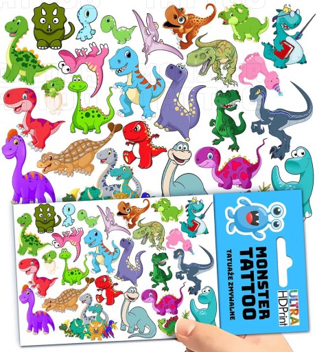 TATUAŻE ZMYWALNE TYMCZASOWE DLA DZIECI DZIECIĘCE DINOZAURY WZORY ORYGINALNE