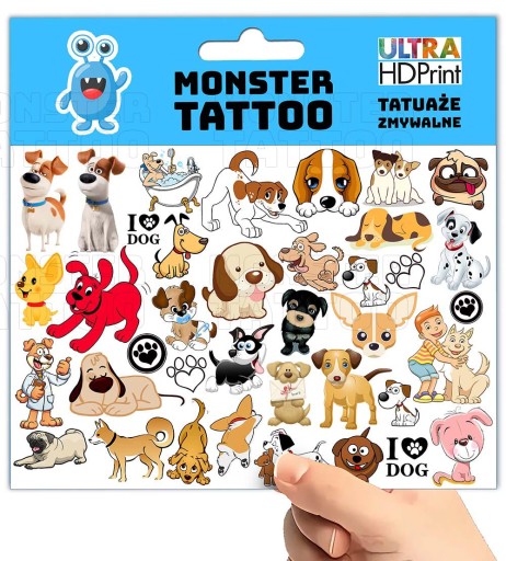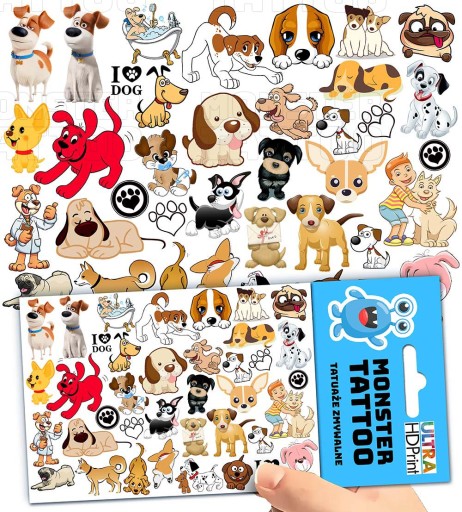 TATUAŻE ZMYWALNE TYMCZASOWE DLA DZIECI DZIECIĘCE PSY DOGS WZORY ORYGINALNE