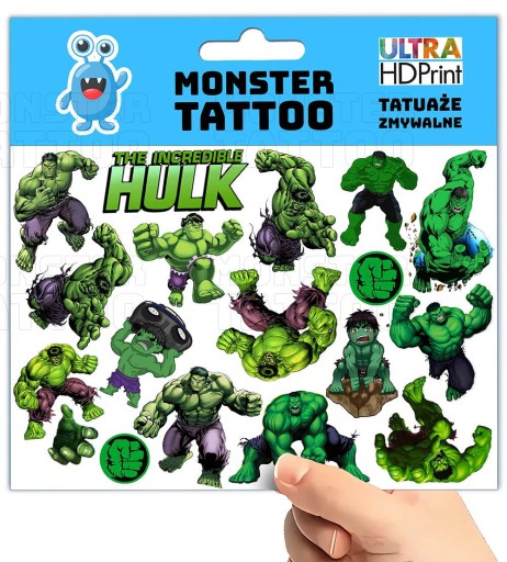 TATUAŻE ZMYWALNE TYMCZASOWE DLA DZIECI DZIECIĘCE HULK WZORY ORYGINALNE