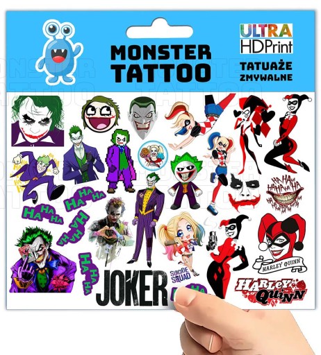 TATUAŻE ZMYWALNE TYMCZASOWE DLA DZIECI DZIECIĘCE JOKER WZORY ORYGINALNE