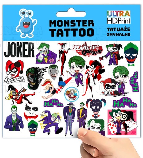 TATUAŻE ZMYWALNE TYMCZASOWE DLA DZIECI DZIECIĘCE JOKER WZORY ORYGINALNE