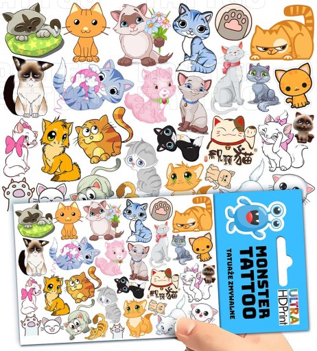 TATUAŻE ZMYWALNE TYMCZASOWE DLA DZIECI DZIECIĘCE KOTY WZORY ORYGINALNE