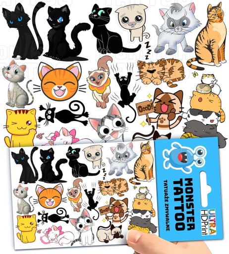 TATUAŻE ZMYWALNE TYMCZASOWE DLA DZIECI DZIECIĘCE KOTY WZORY ORYGINALNE