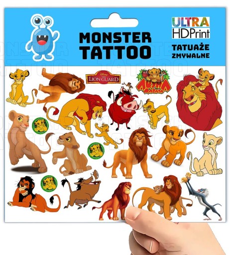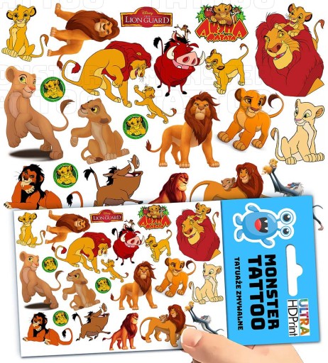TATUAŻE ZMYWALNE TYMCZASOWE DLA DZIECI DZIECIĘCE KRÓL LEW WZORY ORYGINALNE