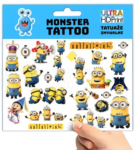 TATUAŻE ZMYWALNE TYMCZASOWE DLA DZIECI DZIECIĘCE MINIONKI WZORY ORYGINALNE