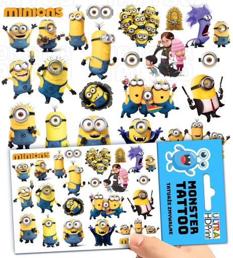 TATUAŻE ZMYWALNE TYMCZASOWE DLA DZIECI DZIECIĘCE MINIONKI WZORY ORYGINALNE