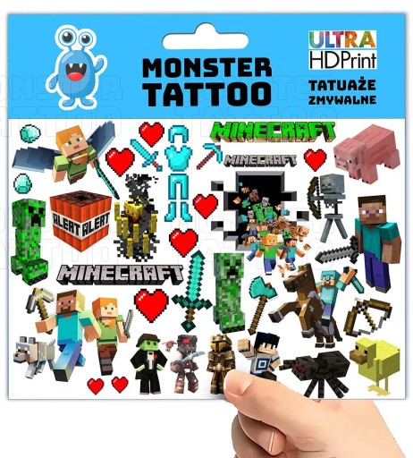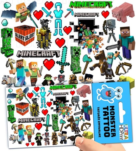 TATUAŻE ZMYWALNE TYMCZASOWE DLA DZIECI DZIECIĘCE MINECRAFT WZORY ORYGINALNE