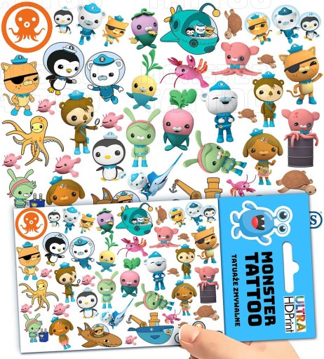 TATUAŻE ZMYWALNE TYMCZASOWE DLA DZIECI DZIECIĘCE OKTONAUCI WZORY ORYGINALNE