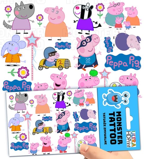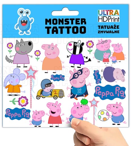 TATUAŻE ZMYWALNE TYMCZASOWE DLA DZIECI DZIECIĘCE PEPPA PIG WZORY ORYGINALNE