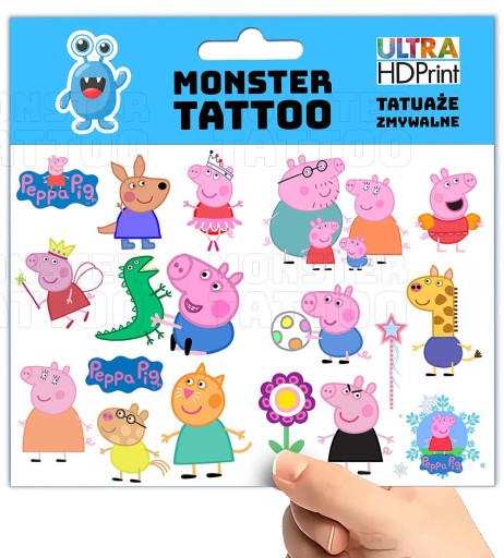 TATUAŻE ZMYWALNE TYMCZASOWE DLA DZIECI DZIECIĘCE PEPPA PIG WZORY ORYGINALNE
