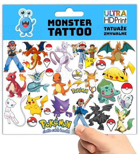 TATUAŻE ZMYWALNE TYMCZASOWE DLA DZIECI DZIECIĘCE POKEMON WZORY ORYGINALNE