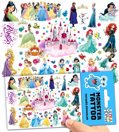 TATUAŻE ZMYWALNE TYMCZASOWE DLA DZIECI KSIĘŻNICZKI WZORY ORYGINALNE