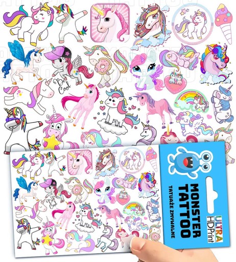 TATUAŻE ZMYWALNE TYMCZASOWE DLA DZIECI JEDNOROŻCE UNICORN WZORY ORYGINALNE