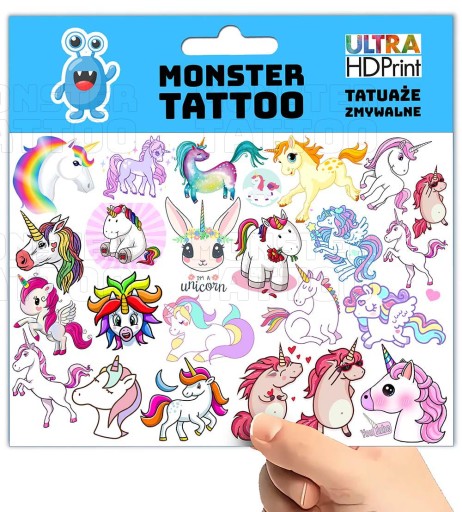 TATUAŻE ZMYWALNE TYMCZASOWE DLA DZIECI JEDNOROŻCE UNICORN WZORY ORYGINALNE
