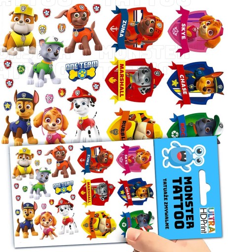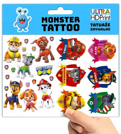 TATUAŻE ZMYWALNE TYMCZASOWE DLA DZIECI PSI PATROL WZORY ORYGINALNE