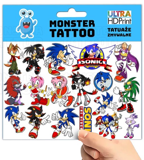 TATUAŻE ZMYWALNE TYMCZASOWE DLA DZIECI DZIECIĘCE SONIC WZORY ORYGINALNE