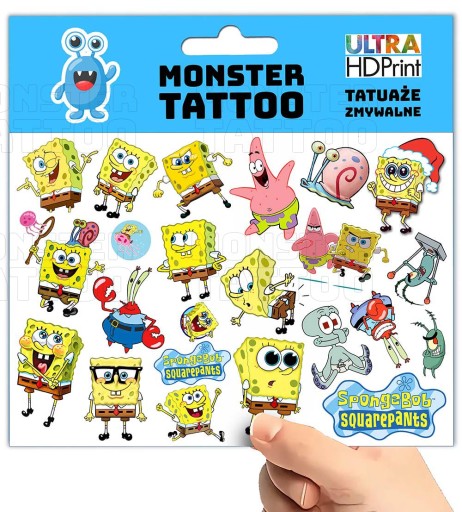 TATUAŻE ZMYWALNE TYMCZASOWE DLA DZIECI DZIECIĘCE SPONGEBOB WZORY ORYGINALNE