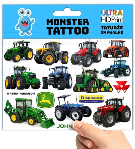 TATUAŻE ZMYWALNE TYMCZASOWE DLA DZIECI DZIECIĘCE TRAKTORY WZORY ORYGINALNE