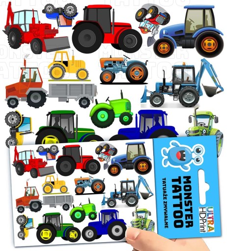 TATUAŻE ZMYWALNE TYMCZASOWE DLA DZIECI DZIECIĘCE TRAKTORY WZORY ORYGINALNE