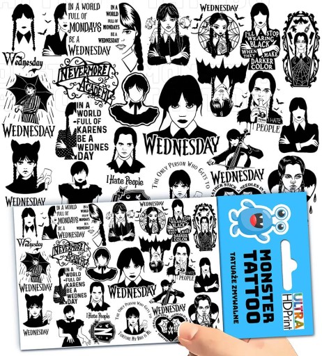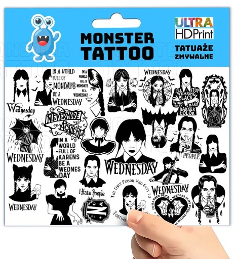 TATUAŻE ZMYWALNE TYMCZASOWE DLA DZIECI DZIECIĘCE WEDNESDAY WZORY ORYGINALNE