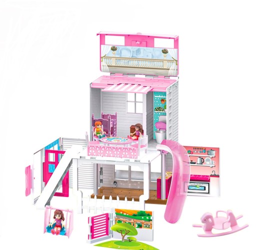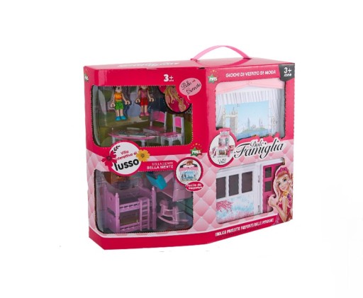Domek z kosteczki rozkłada się w wymarzoną wille dla lalek. Z tyłu domku posiada uchwyt pasujący do wszystkich telefonów by nadać ulubiony krajobraz z okna. Domek posiada wszystkie akcesoria jak na zdjęciu.