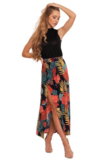Długa SPÓDNICA Damska MAXI z Rozcięciem w Kwiaty Modna Zwiewna MORAJ XL