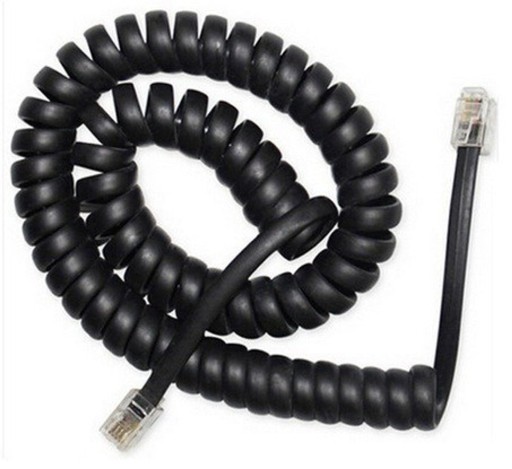 Спиральный телефонный кабель RJ10/4P4C/2м/Черный