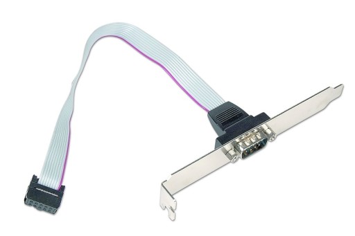 Gniazdo COM z możliwością instalacji w slocie kart rozszerzeń komputera. Pozwala wprowadzić jeden wewnętrzny port IDC 10pin w celu połączenia jednego zewnętrznego urządzenia szeregowego. Posiada jeden zewnętrzny port szeregowy DB9M - COM 9PIN.