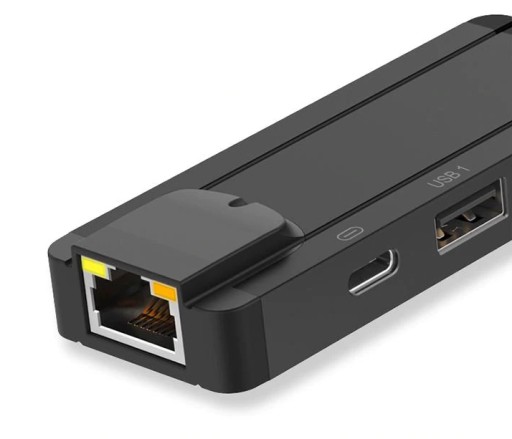 Hub podłaczamy do urządzenia Apple ze złaczem lightning, pozwala to od razu podłączyć do niego urządzenia zewnętrzne jak np. myszka, klawiatura pod USB. Złącze RJ45 pozwala na podłaczenie do urządzenia internetu za pomocą kabla internetowego.
